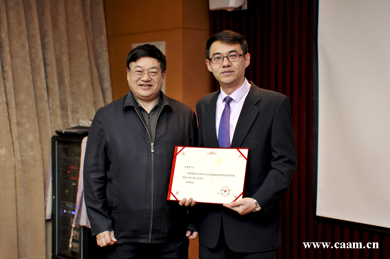 国家中医药管理局科技司邱岳处长为刘保延颁发联盟理事长聘书