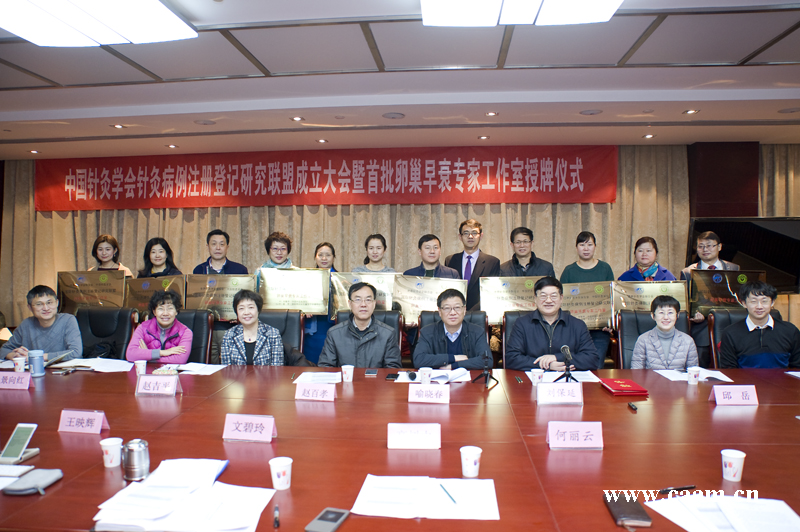 针灸病例注册登记研究联盟由针灸病例注册登记研究中心及专家指导委员会组成,下设不同病种的临床研究工作室,针灸病例注册登记研究中心挂靠在中国中医科学院临床基础医学研究所临床评价中心。会上,联盟为中国中医科学院针灸医院房繄恭主任医师领衔的第一个针灸临床工作室——卵巢早衰专家工作室进行授牌,正式启动针灸治疗卵巢早衰的真实世界临床研究。
